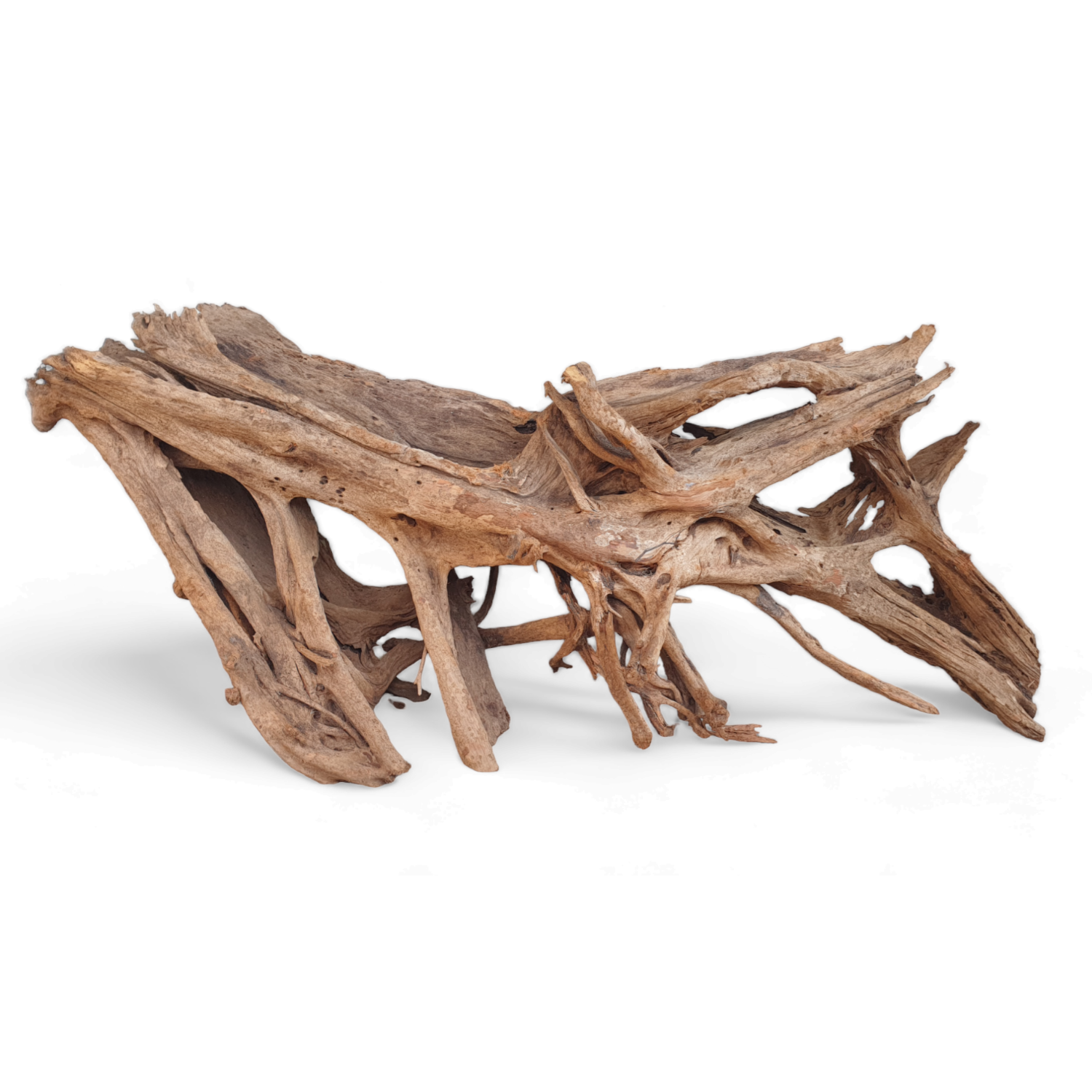 Korzeń mangrowca to klasyka w akwarystyce i terrarystyce. Ciężki, masywny, o nieregularnych kształtach i naturalnej fakturze, od lat stanowi podstawę wielu aranżacji. Jego gęsta struktura sprawia, że nie wypływa w wodzie, a rozłożyste formy świetnie budują przestrzeń w terrarium.