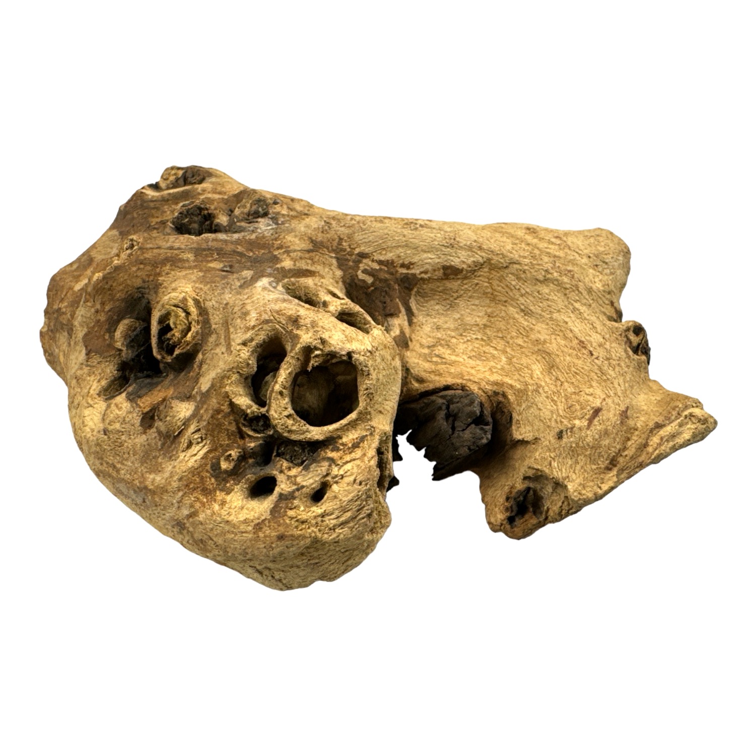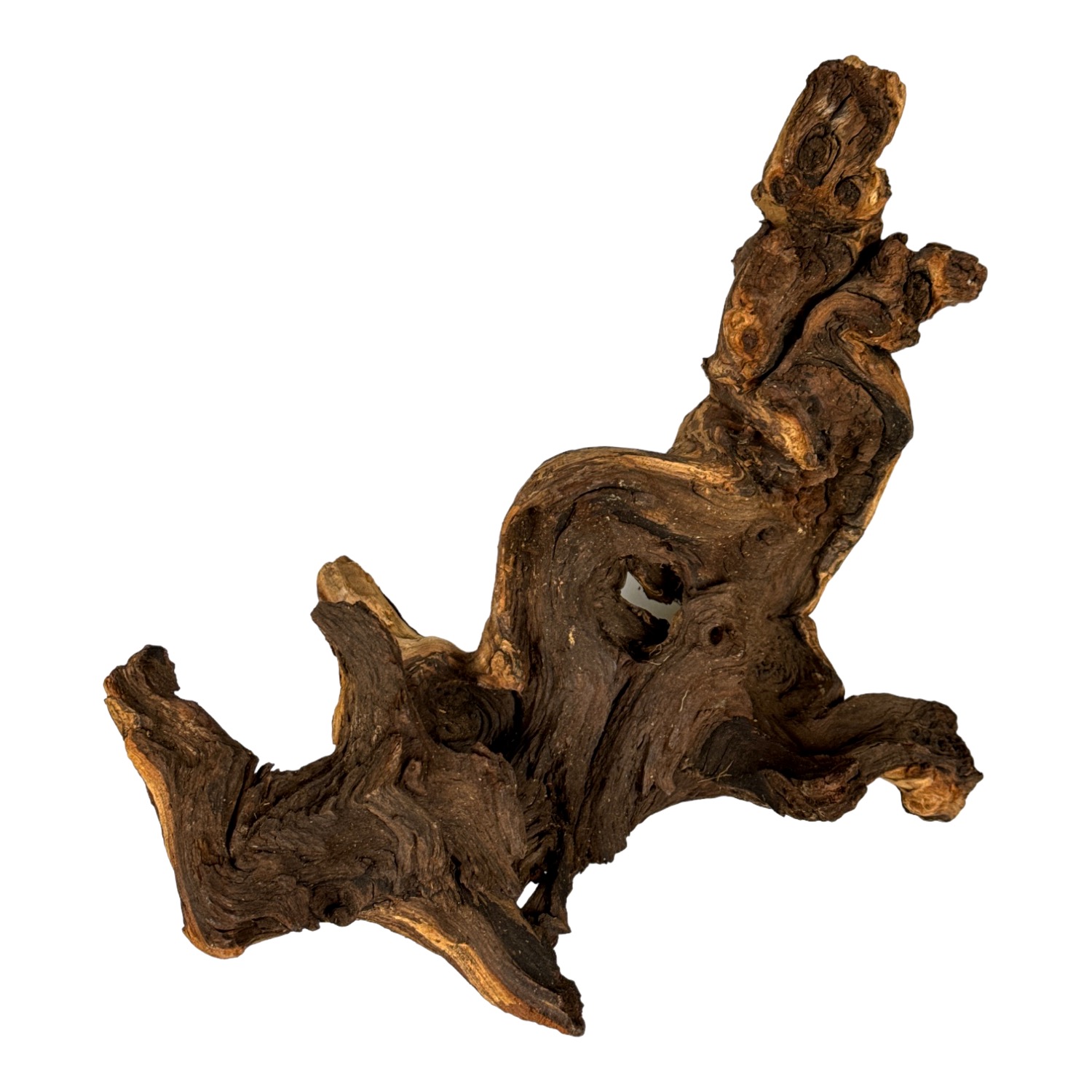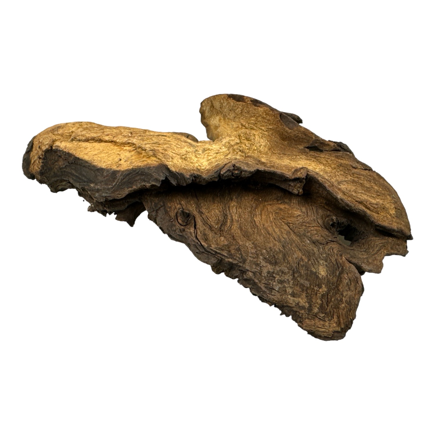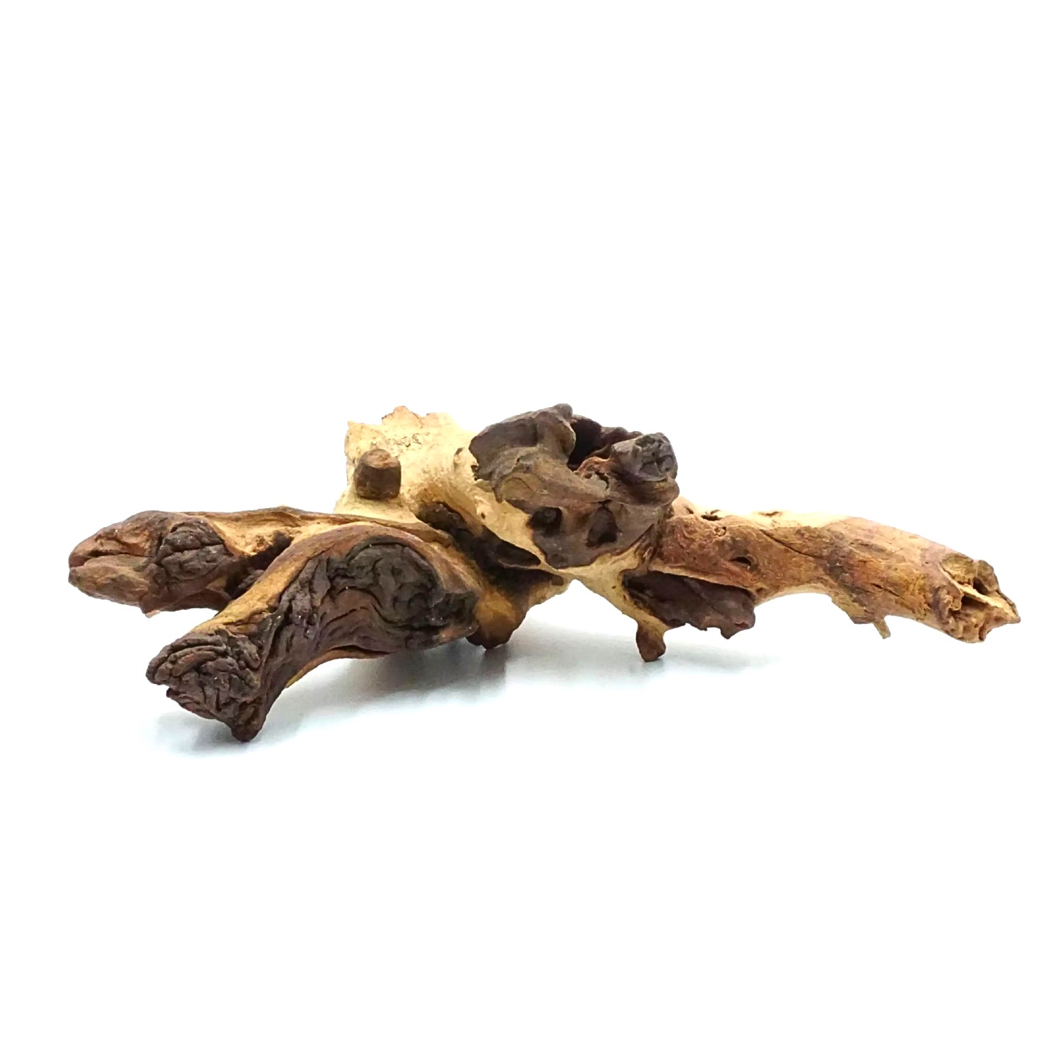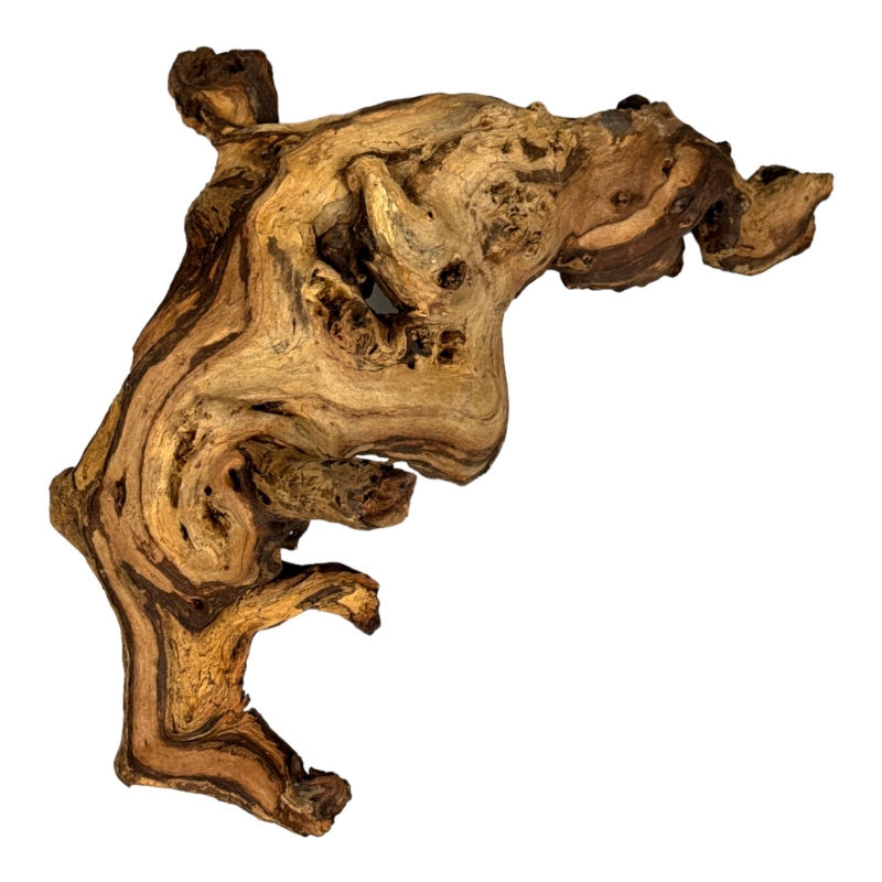 Mopani Wood to jeden z najtwardszych i najcięższych korzeni dostępnych w akwarystyce i terrarystyce. Charakteryzuje się dwubarwną fakturą – jasne i ciemne partie drewna układają się w efektowne wzory, które dodają aranżacjom naturalnego charakteru. Dzięki swojej masywności Mopani doskonale stabilizuje kompozycje i nie wypływa w akwarium.