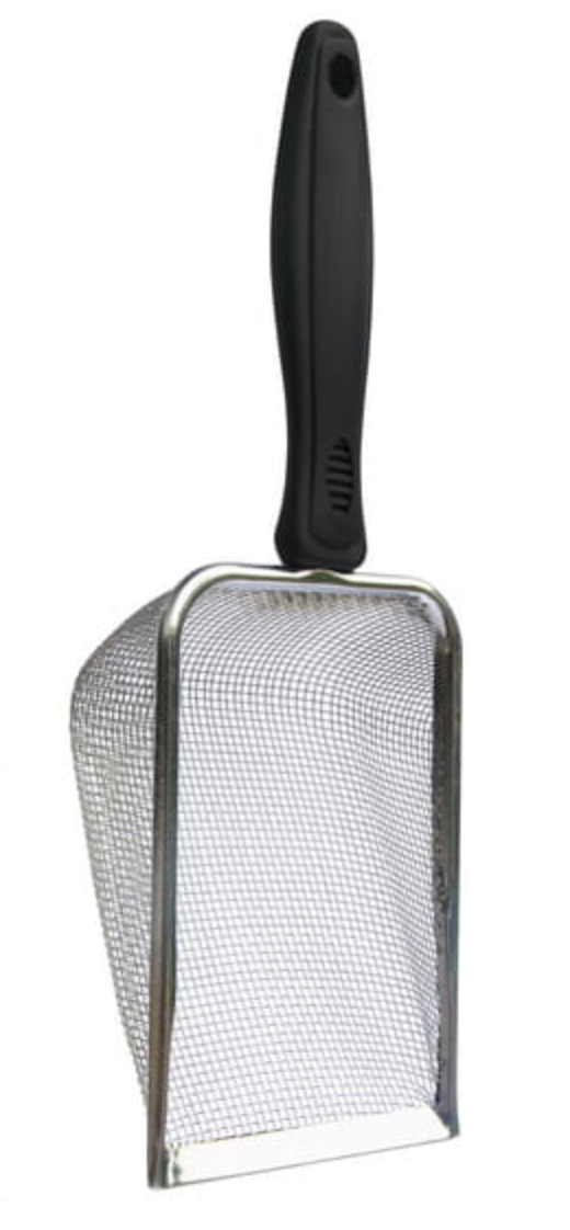 Łopatka Exo Terra to niezawodne akcesorium do czyszczenia piasku w terrarium. Doskonale przesiewa piasek usuwając wszelkie zanieczyszczenia. Szufelka została wykonana z wysokiej jakości stali nierdzewnej. Jej siateczka jest bardzo drobna, co zapewni lepsze przesiewanie piasku. Posiada wytrzymałą, ergonomiczną rączkę, która idealnie przystosowuje się do kształtu dłoni, dzięki czemu sprzątanie stanie się o wiele wygodniejsze i sprawniejsze. Odpowiedni kształt szufelki umożliwi dotarcie do narożników terrarium.