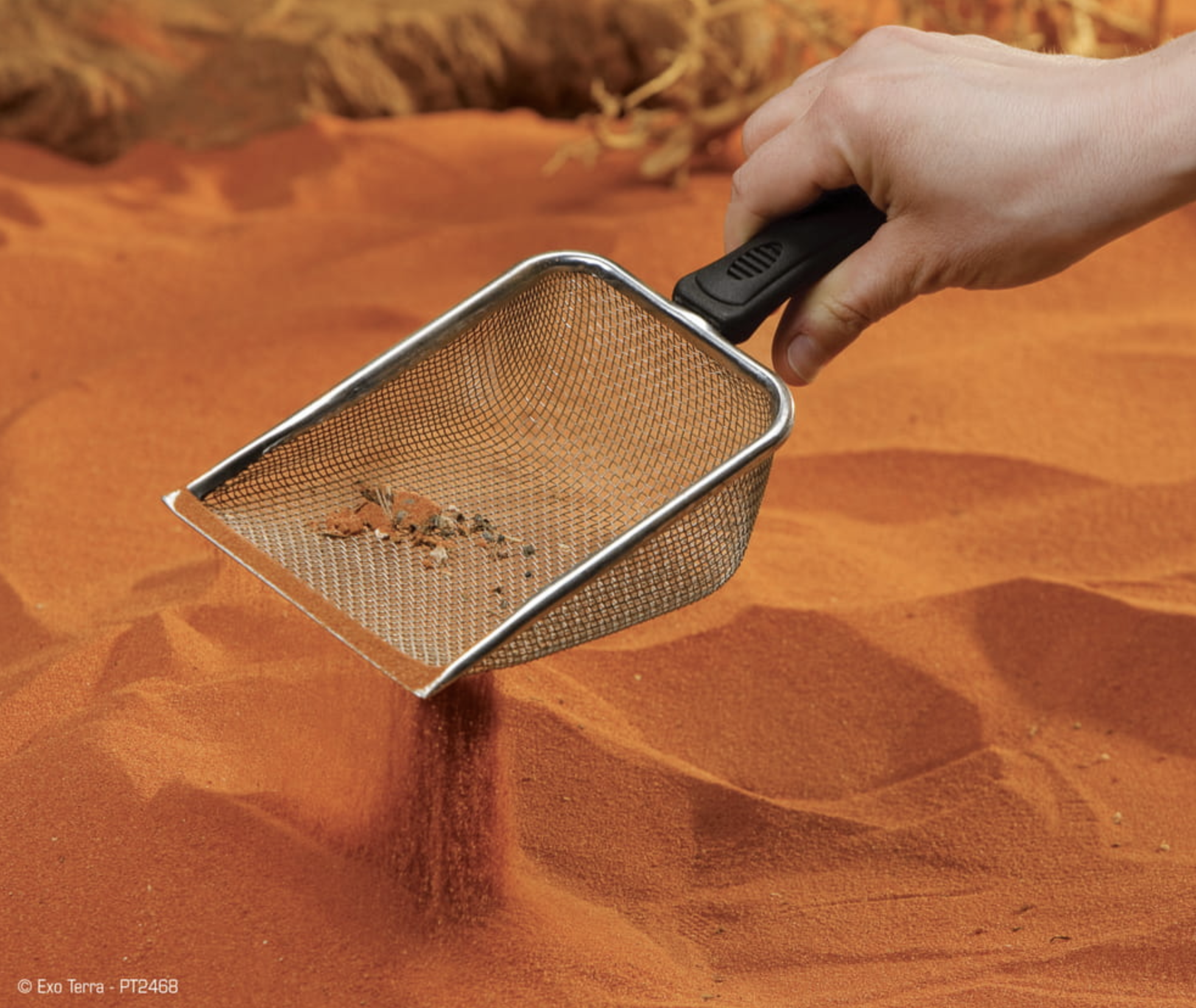 Wysokiej jakości łopatka Exo Terra to idealny sposób na usunięcie zanieczyszczeń z piasku w terrarium.