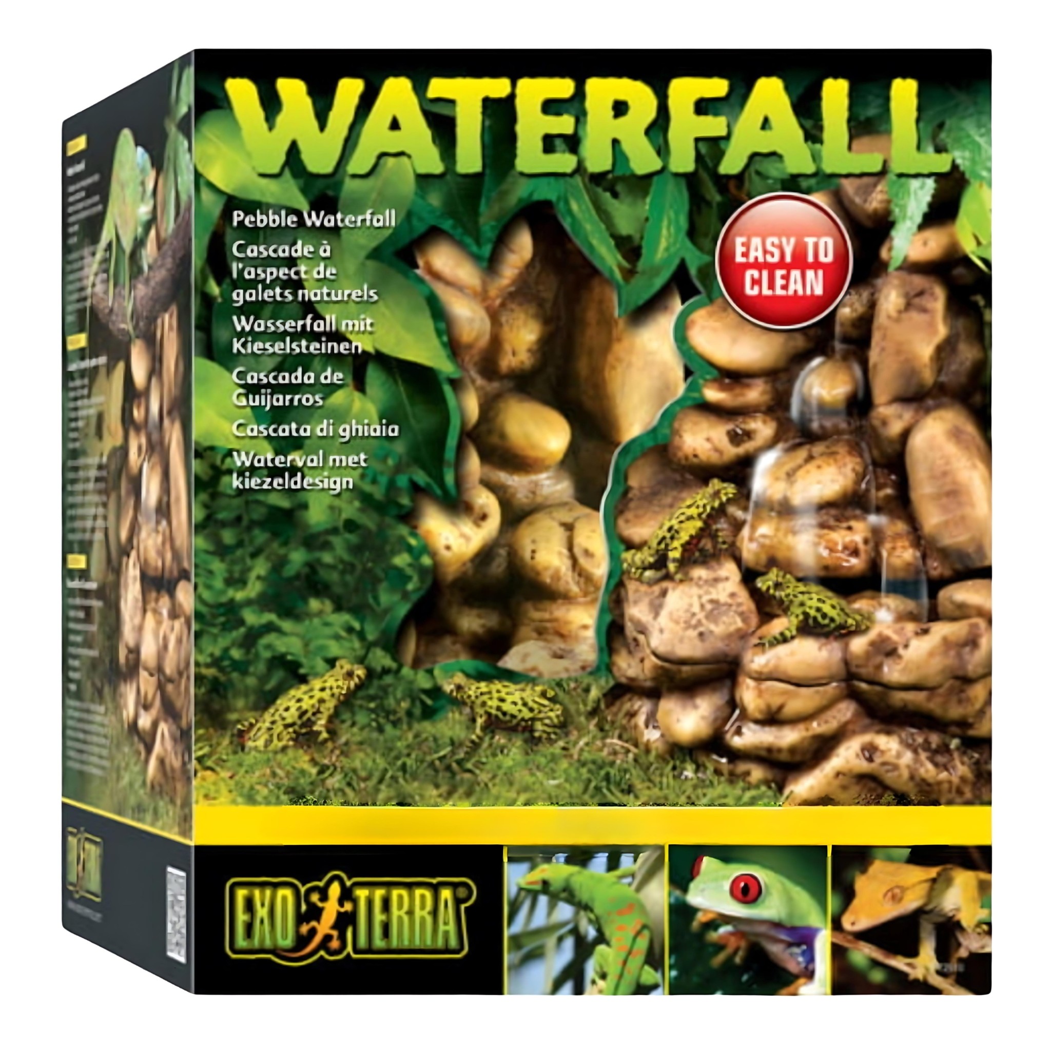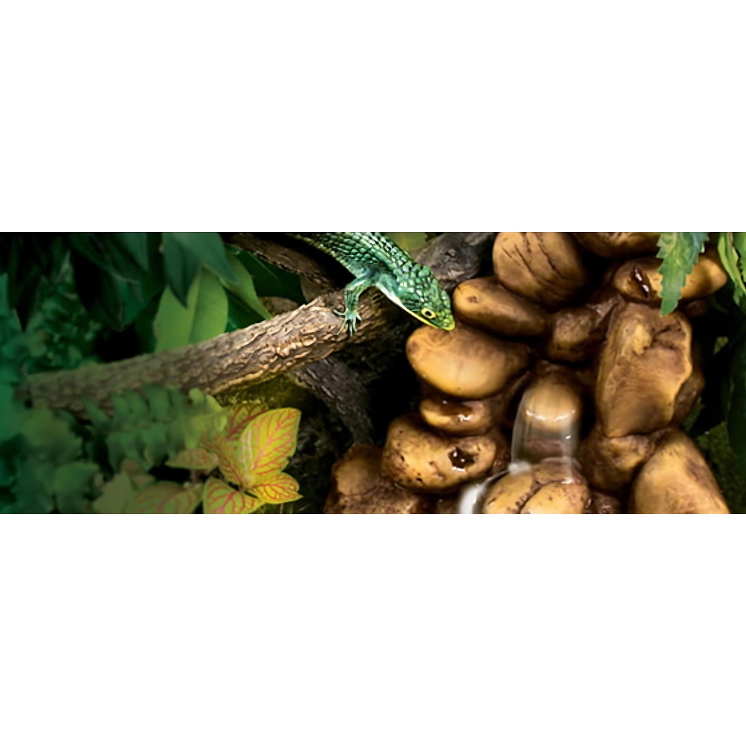 Wodospad z kamiennym designem stworzy w Twoim terrarium naturalnie wyglądający kaskadowy strumień wody, który będzie chętnie odwiedzany przez zwierzęta. Małe strumienie i wodospady często przyciągają różne gady oraz płazy i są ważnym elementem tropikalnych środowisk. Płynąca woda stymuluje naturalne odruchy pobierania wody u gadów (np. kameleonów, anolisów, agam, itp.).
