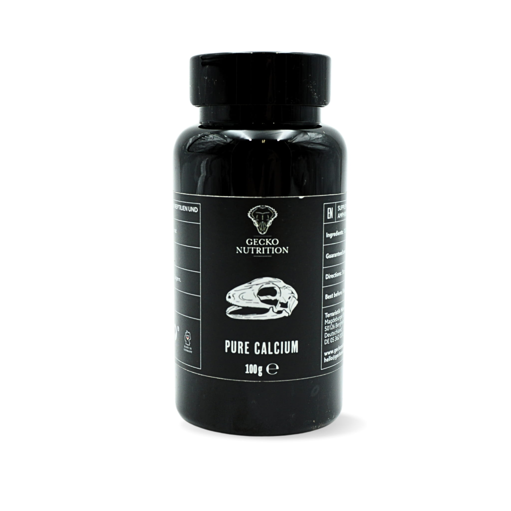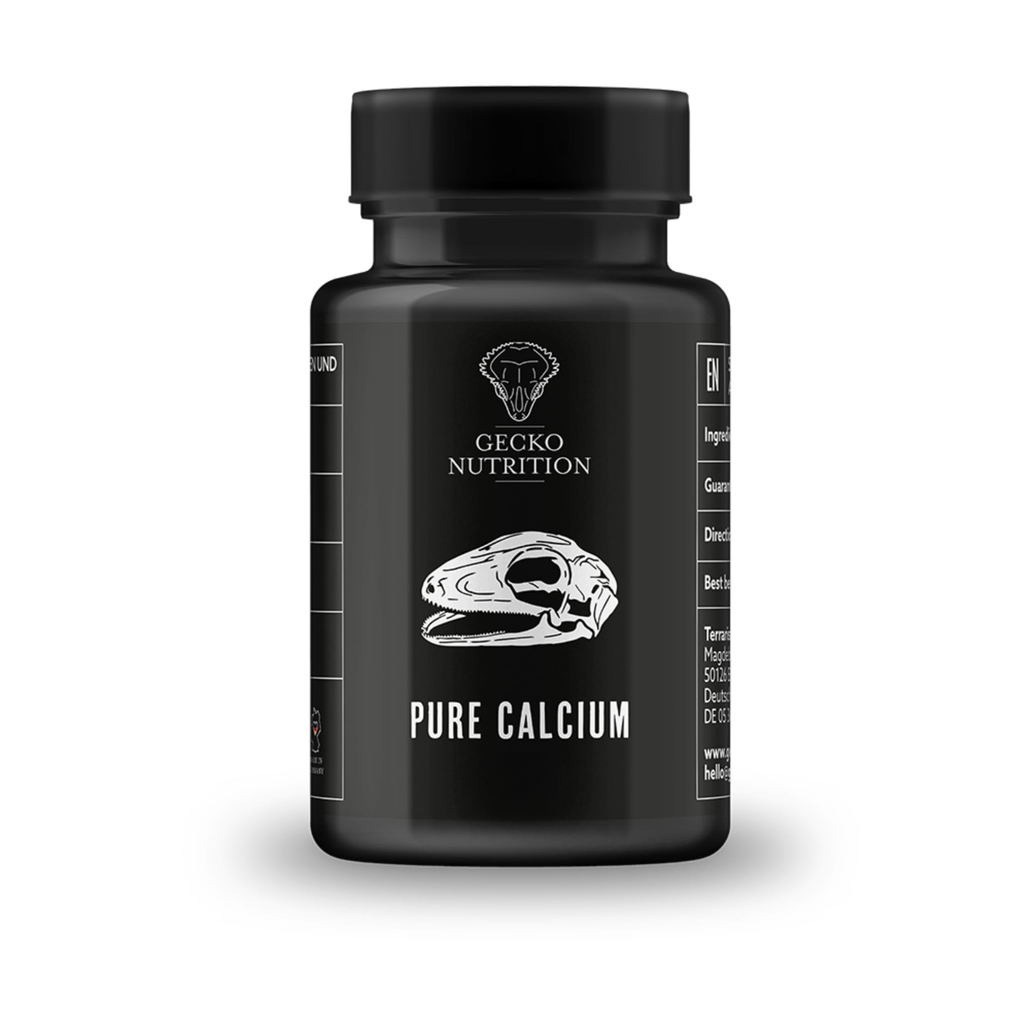 Gecko Nutrition Pure Calcium to czysty preparat wapnia bez witaminy D3, który zapobiega i kompensuje niedobór wapnia i jego wtórne choroby (takie jak Metabolic bone disease). Wspiera zdrowy metabolizm wapnia i przyczynia się do optymalnego rozwoju kośćca.