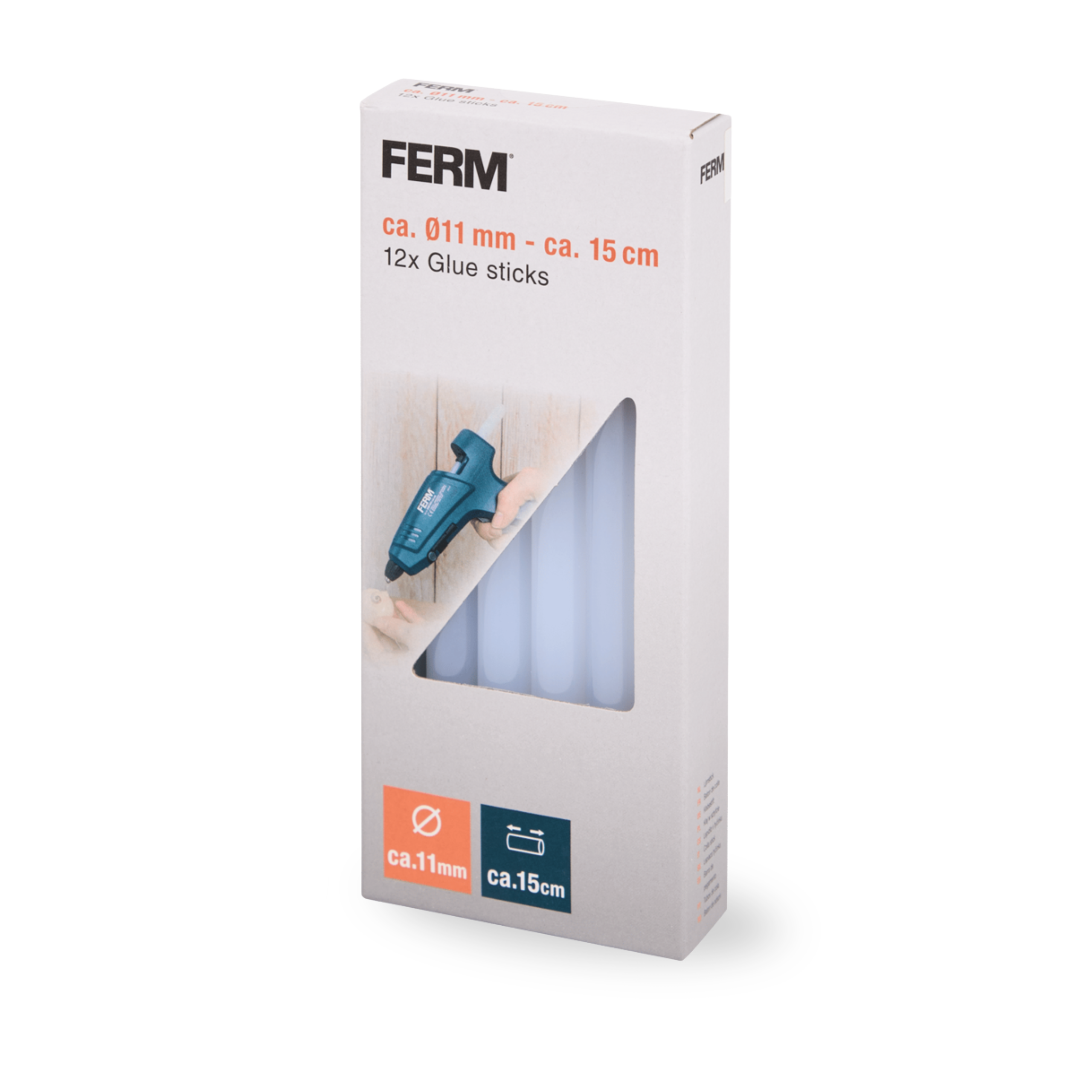 FERM Klej w sztyfcie do klejenia na gorąco bezbarwny 15 cm 11 mm - 12 sztuk