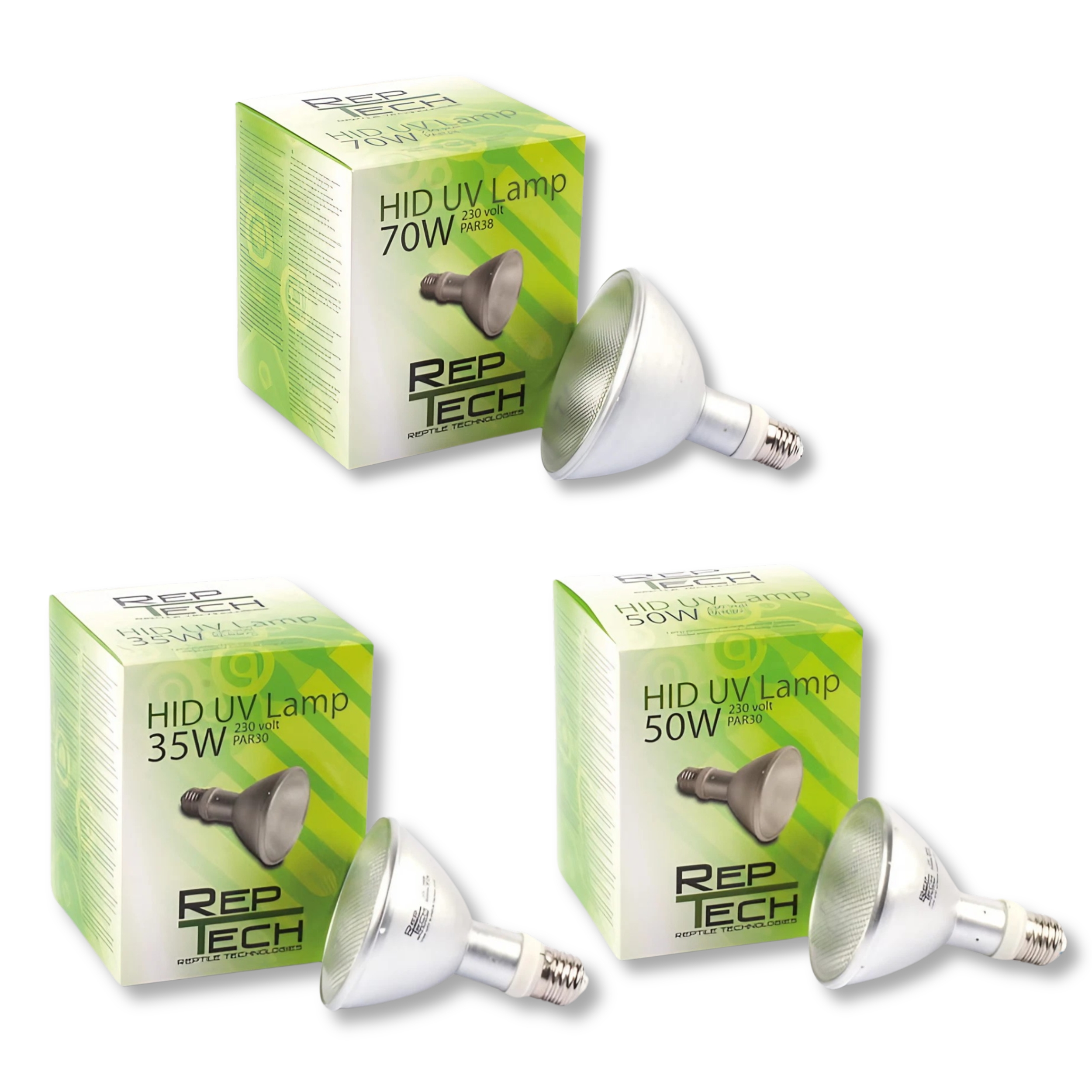 Technologia HID oferuje najbardziej stabilne, a także najtańsze rozwiązanie do dostarczania światła, UVA, UVB i ciepła dla gadów i ptaków. Najwyższej jakości żarówki metahalogenowe RepTech mają żywotność co najmniej 12 miesięcy przy normalnym użytkowaniu oraz stabilny poziom promieniowania UV w długim okresie. Lampy te posiadają zewnętrzne stateczniki, więc do działania potrzebny będzie dodatkowy zespół rozruchowy (balast/statecznik).