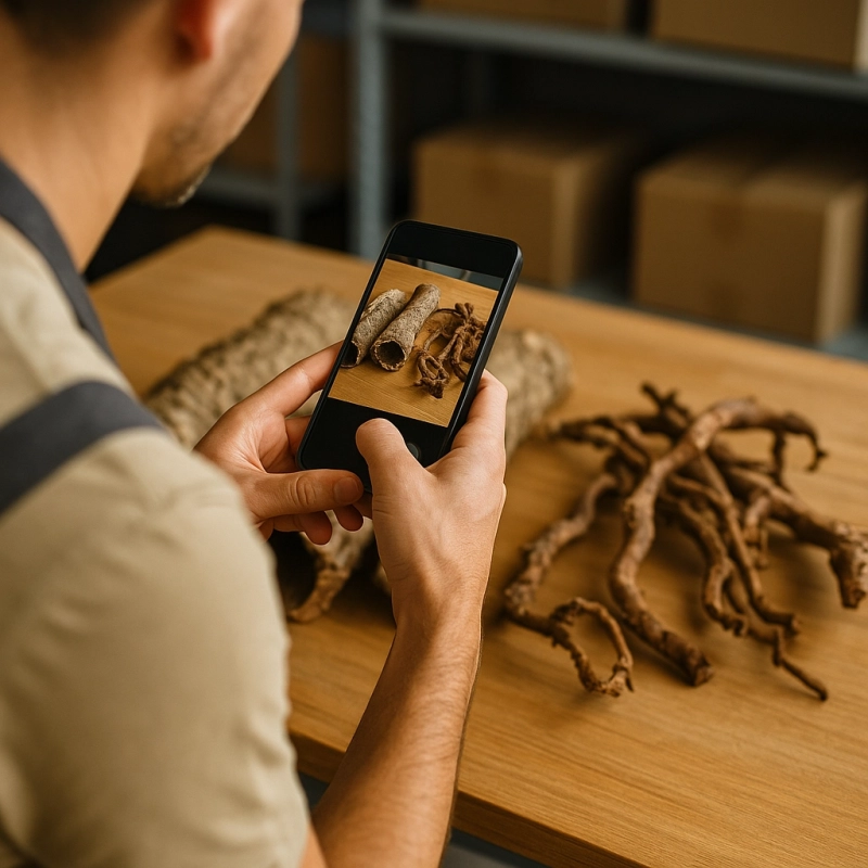 - Przykład: kupujesz Tuby korkowe na wagę 1 kg mix + Korzeń mangrowca S + Liana korkowa 50 cm i chcesz zdjęcia wszystkich – dodaj usługę 3×.