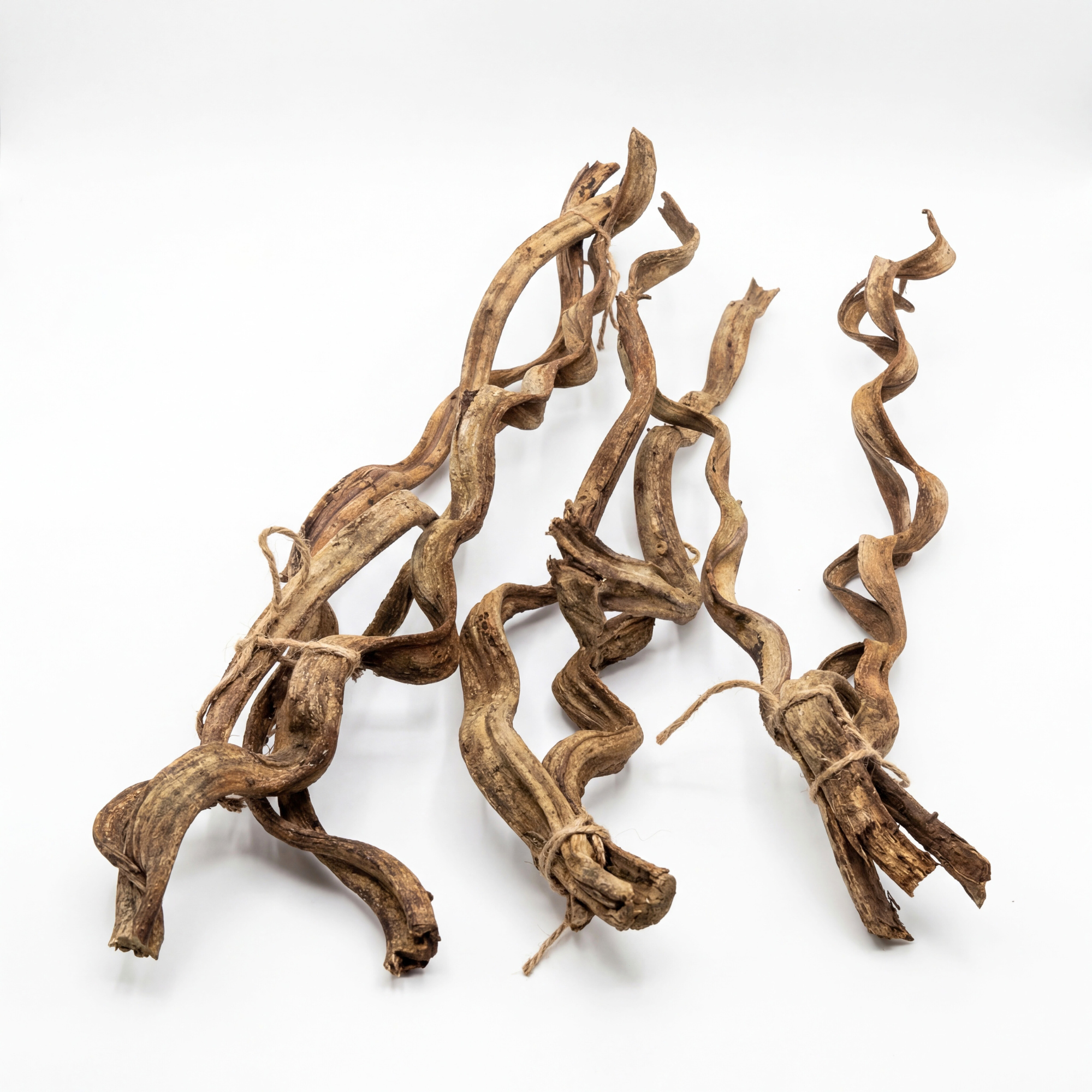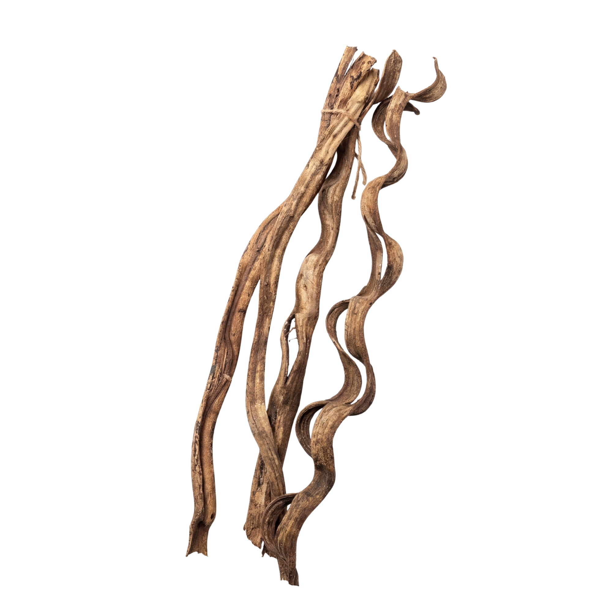 Każdy zestaw zawiera 3 liany o długości około 60 cm i średnicy około 2–3 cm. Naturalne krzywizny oraz skręcone fragmenty tworzą idealne elementy wspinaczkowe dla zwierząt nadrzewnych, zapewniając stabilne miejsca odpoczynku oraz naturalne trasy przemieszczania się w terrarium.